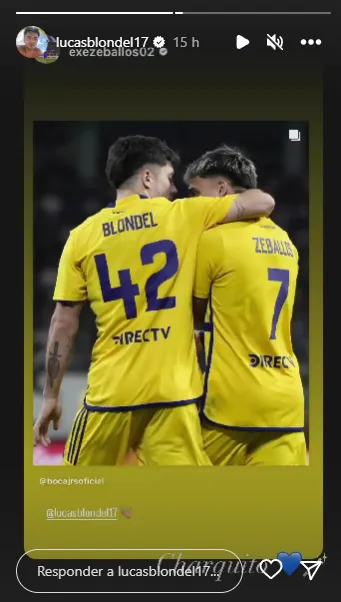 Sin embargo, en dicho posteo, Blondel sorprendió con un inédito apodo para el santiagueño, ya que en lugar de nombrarlo con el tradicional “Changuito” por el que es conocido Zeballos, el ex Tigre escribió “Charquito”, junto con un emoji de un corazón azul y una varita de mago. De yapa, sumó en la historia de Instagram la canción “Solo voy”, de la banda de rock La 25. ¡Una buena amistad por la banda derecha xeneize!