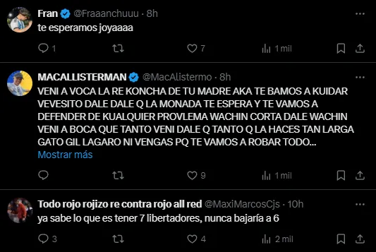 En este contexto, en la Ribera ya enviaron ofertas para negociar los pases de Fausto Vera, Tomás Belmonte y Alan Velasco. Con todos ellos se maneja optimismo puertas adentro, y los hinchas en redes sociales se mostraron de la misma manera.