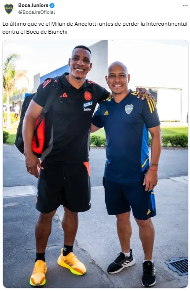 “Lo último que ve el Milan de Ancelotti antes de perder la Intercontinental contra el Boca de Bianchi”, publicó el Xeneize. La frase hace referencia a la Copa Intercontinental de 2003 en la que Boca se impuso por penales para ser campeón del mundo por tercera vez en su historia.
