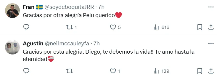 “Gracias Dieguito por manifestarte en el cuerpo de Deyverson”, “gracias Diego”, “desde donde este nos sigue dando alegrías“, fueron algunas de las respuestas de los hinchas de Boca al saludo de la cuenta oficial.