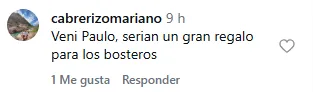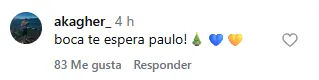 Debajo de la publicación, que acumuló más de 1,4 millones de ‘me gusta’ y 4 mil comentarios en sus primeras 9 horas, los hinchas de Boca le pidieron que tome la decisión de regresar al fútbol argentino: “Vení, Paulo. Sería un gran regalo para los bosteros”.
