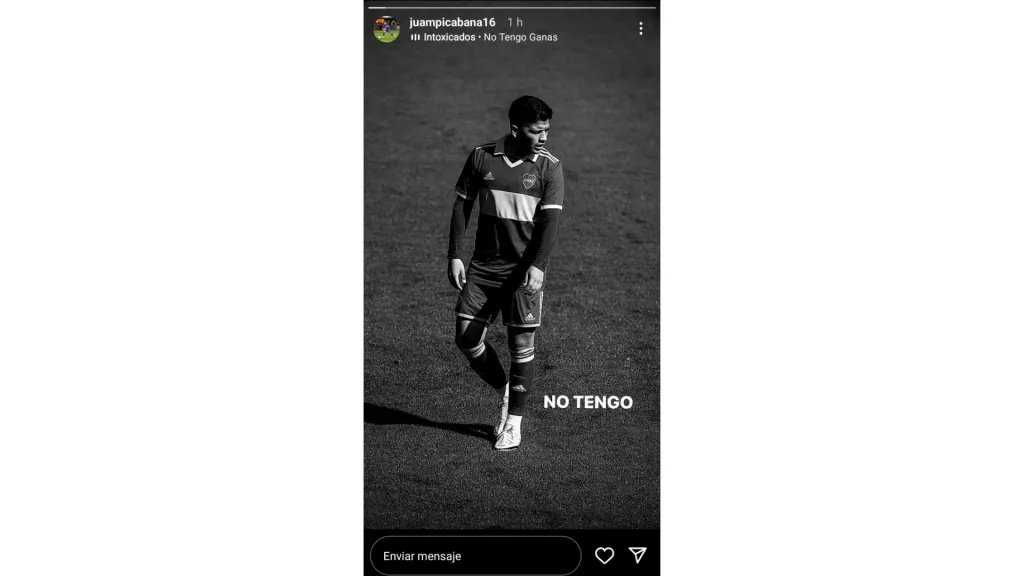 De la misma manera que los mencionados anteriormente, Cabaña posteó una historia en Instagram con una foto suya en blanco y negro y la acompañó de la canción “No tengo ganas”, de Intoxicados, justamente con el inicio del tema, el cual tiene como letra: “No tengo ganas de seguir, pero tampoco tengo ganas de parar, tendría que pensar que me esta pasando, pero es que estoy cansado de pensar“.