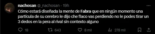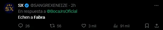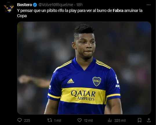 Debido a su irresponsable acto en el que dejó a Boca con 10 en un momento en donde tenía superioridad numérica y una chance inmejorable de empatar el partido en el alargue, el público xeneize de las redes sociales le dio la responsabilidad número 1 de la derrota a Frank Fabra. En Twitter, el nombre del colombiano fue tendencia a nivel nacional y todo fue por críticas durísimas hacia su persona.