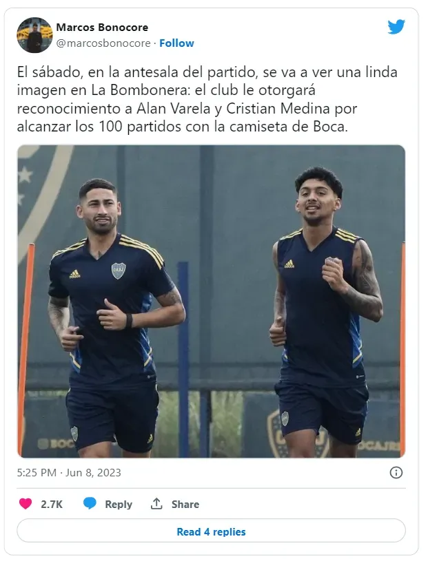 Más allá de que vayan de arranque o no ante Lanús, Boca prepara un pequeño mimo para ambos. En la previa del encuentro, se les entregará a ambos una camiseta con el número 100 y serán aplaudidos por todo el estadio. Un merecido homenaje para dos de los mejores juveniles surgidos en esta gestión.