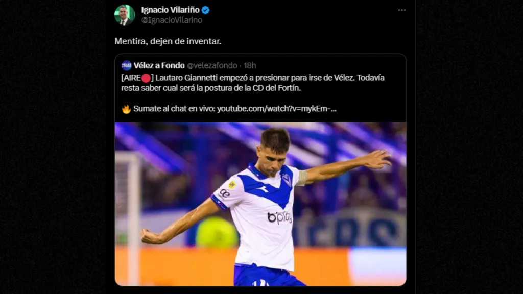 Sin embargo, el representante del propio jugador, Ignacio Vilariño, salió a desmentir estas versiones y se apegó a lo que expresaban desde Boca: que Giannetti pretendía quedarse hasta la finalización de su vínculo o esperaría a que aparezca alguna operación concreta que analizaría para salir este mercado. En su cuenta de Twitter, el repre soltó: “Mentira, dejen de inventar“. Por lo pronto, la novela de Giannetti a Boca pareciera recién comenzar.