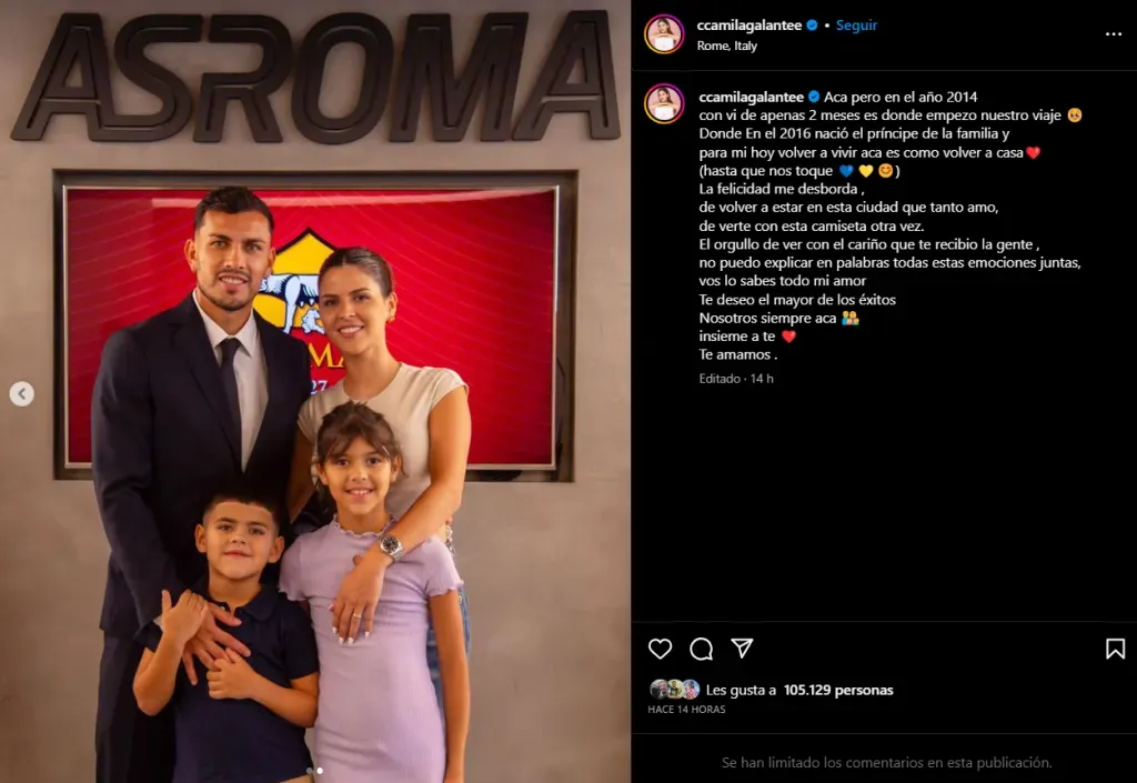 “Para mi hoy volver a vivir aca es como volver a casa”, escribió Camila, que inmediatamente aclaró: “Hasta que nos toque Boca”. Rápidamente, el posteo de la esposa del futbolista se llenó de interacciones. ¿Cuándo se dará el regreso de Paredes al equipo de la Ribera?
