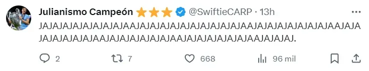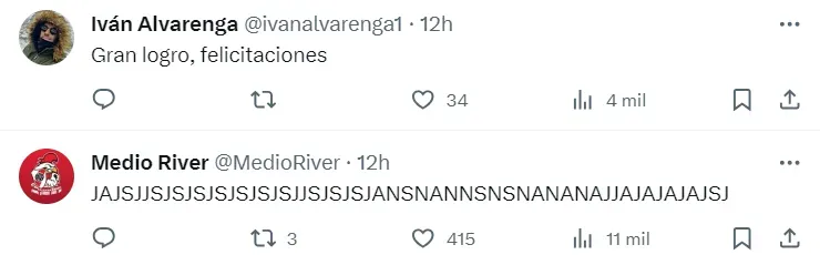 Las respuestas del tuit se inundaron de burlas de los hinchas de River, que no se cansaron de viralizar el fracaso deportivo de su rival resumido en una imagen. Será un año largo para el club de la Ribera, que no podrá luchar por la Séptima al menos hasta 2025.