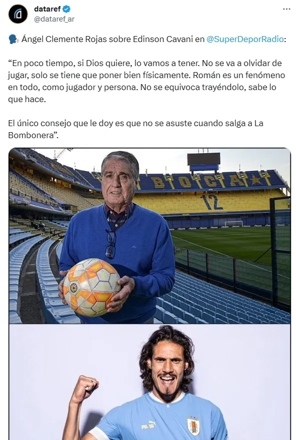 En ese contexto, una de las mayores glorias del Xeneize se puso al tanto de la posibilidad de que el charrúa aterrice en Brandsen 805 y, con mucha alegría, ya le dio la bienvenida. “En poco tiempo, si Dios quiere, lo vamos a tener. No se va a olvidar de jugar, solo se tiene que poner bien físicamente”, dijo Ángel Clemente Rojas en diálogo con SuperDeportivoRadio.