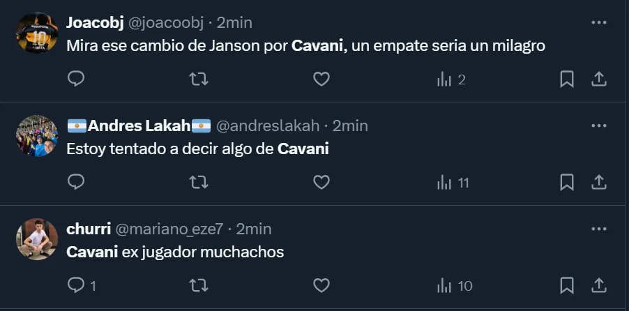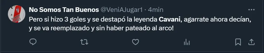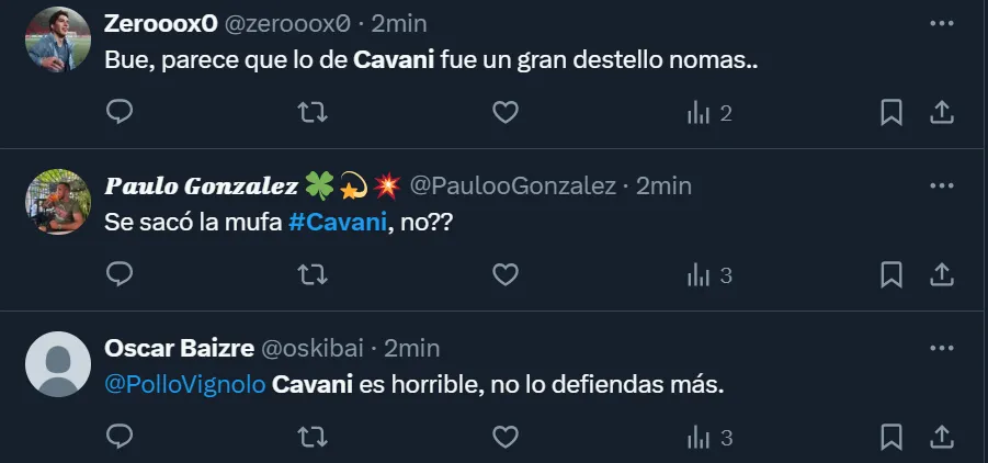 A Martínez lo cuestionaron por haber sacado a Cavani, a quien también le reprocharon no haber convertido goles en los 61 minutos que afrontó en tierras santafesinas. Y así como sostuvieron que lo que hizo en La Bombonera fue un ‘veranito’, también indicaron que es un “ex jugador”.