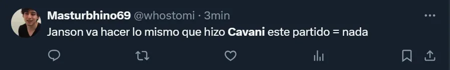 A raíz de lo que fue el desempeño boquense a lo largo de los 90 minutos, los fanáticos desataron una catarata de críticas para con el entrenador, como así también para Edinson Cavani, quien venía de convertir por triplicado contra el Pirata. Si bien el rendimiento del charrúa fue de menor a mayor, cuando estaba por llegar a la cumbre, fue reemplazado por Lucas Janson. Allí llegó el estallido.
