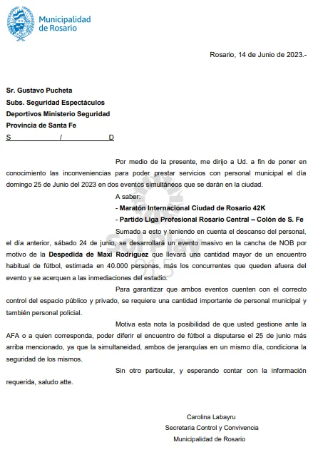 Desde el Municipio pidieron que el partido se juegue en otra fecha, ya que ese 25 de junio habrá una maratón internacional en la ciudad. El pedido ya es oficial y aguardan la respuesta de la AFA, que no quería el cambio de día.