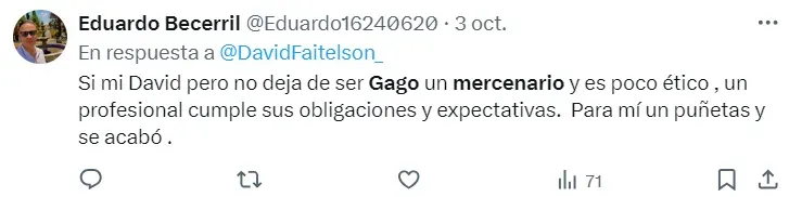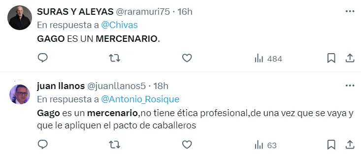 El entrenador viene siendo muy señalado por los futboleros de México, ya que consideran que solo aprovechó llegar a Chivas por la propuesta económica y no la deportiva. Tal es así que hay miles de mensajes contra el DT, a la espera de que comunique su decisión oficial.