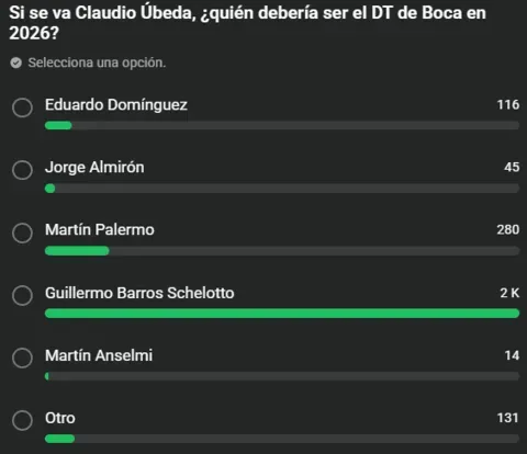Sobre la mesa se pusieron 5 de las opciones más fuertes en boca de los hinchas Xeneizes, además de agregar la alternativa ‘otro’, dónde podían votar para elegir a un director técnico no mencionado.