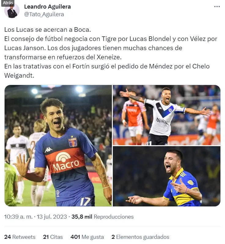 En las últimas horas, avanzaron las conversaciones entre el Consejo de Fútbol y Tigre por Lucas Blondel. El lateral derecho tiene una cláusula que ronda los 2 millones de dólares (monto cercano al que el Matador debe abonarle al Xeneize por Retegui) y el 4 es del gusto de Almirón.