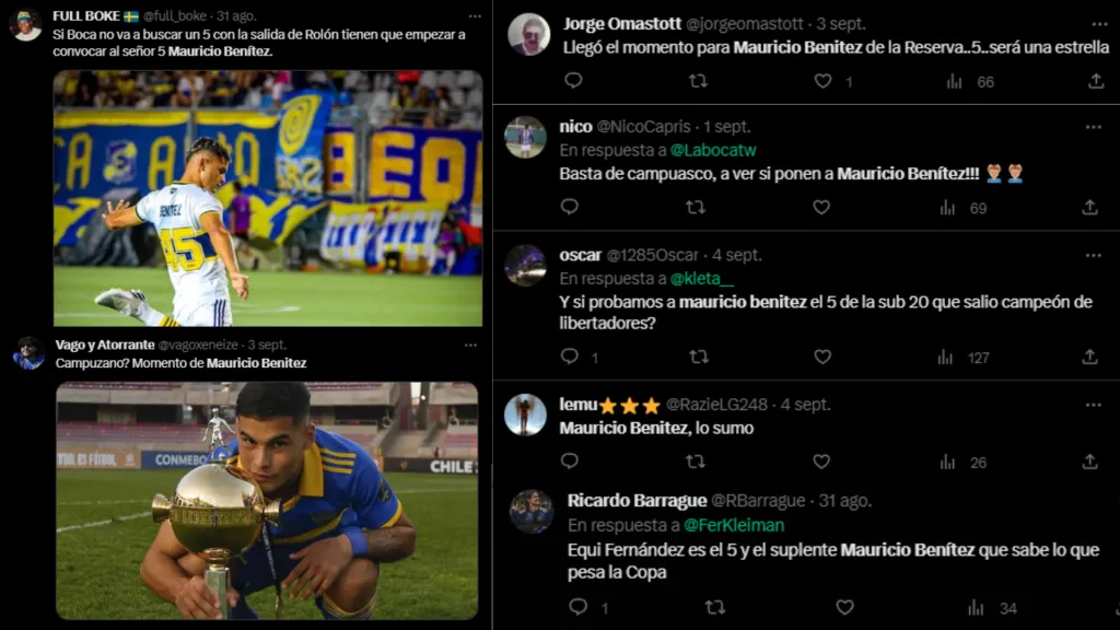 Sin embargo, los hinchas de Boca propusieron que se le empiece a dar minutos a Mauricio Benítez, el volante central de la Reserva que fue la gran figura del Xeneize en la obtención del título de la Copa Libertadores sub 20 anotando tres goles en todo el certamen.