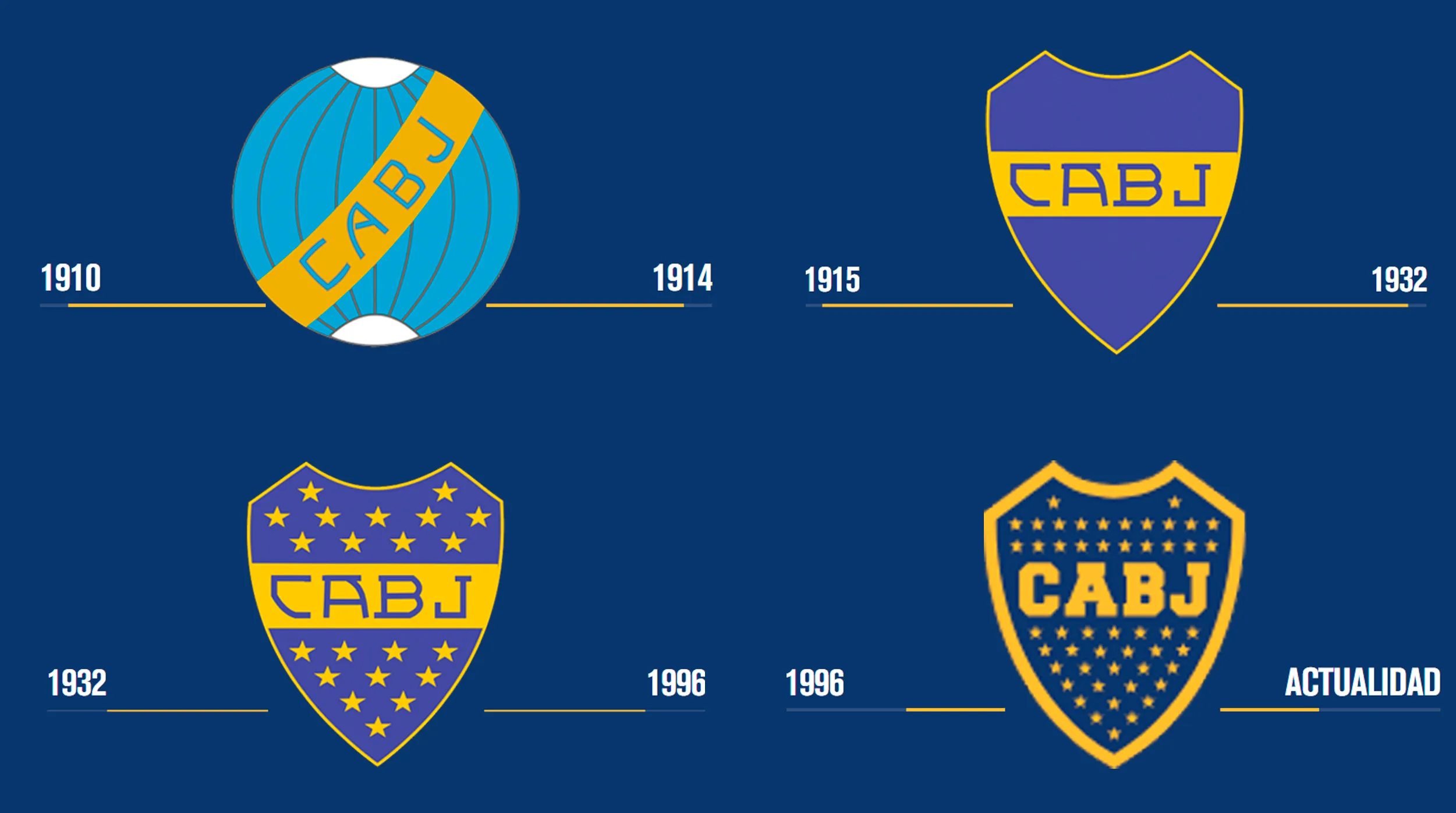 Los 4 escudos oficiales de la historia de Boca