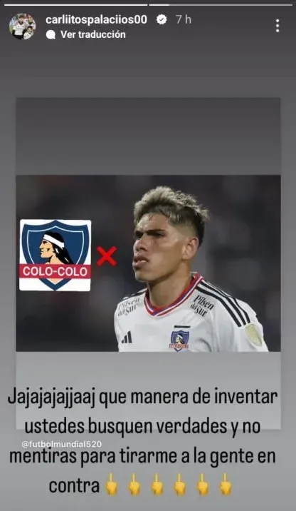Los rumores de mercado desorientan, ilusionan y generan reacciones tanto negativas como positivas. Sin ir más lejos, el delantero chileno Carlos Palaciosvolvió a ser vinculado con una posible llegada al Xeneize y al atacante de Colo-Colo no le gustó nada.