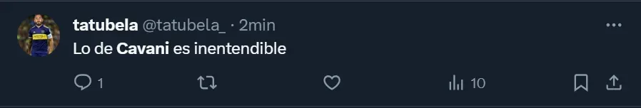 El Xeneize desperdició una nueva chance de conseguir un triunfo, ya que venía de igualar contra Platense. Y el lamento de los fanáticos fue total, pero sobre todo con Edinson Cavani, quien tuvo una performance para el olvido. El charrúa no estuvo fino, falló situaciones muy claras y sigue sin poder convertir, por el torneo doméstico, desde agosto de 2023, cuando le anotó al Calamar en La Bombonera.
