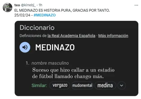 Con el hashtag #Medinazo, los simpatizantes del Xeneize lograron que el término con el que bautizaron la igualdad en Núñez se convierta en la primera tendencia del X (antes Twitter) en cuestión de horas. Pero, ¿de qué trata realmente?