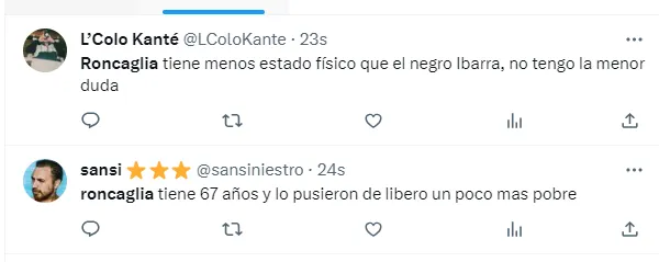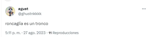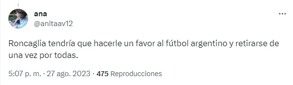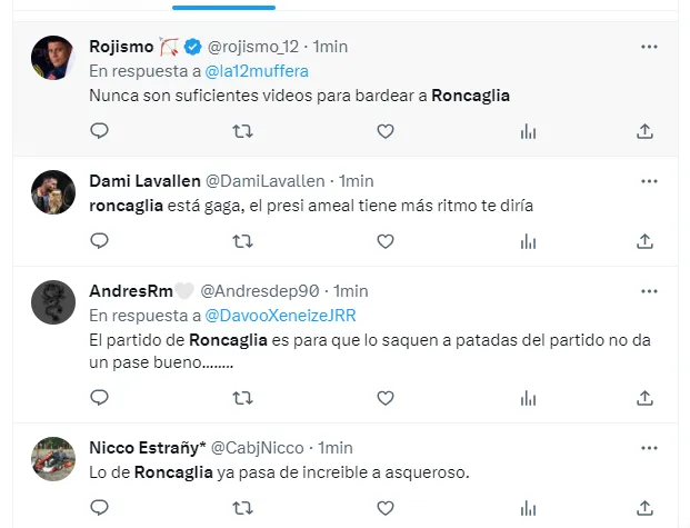 “Roncaglia es un tronco“, “Roncaglia tendría que hacerle un favor al fútbol argentino y retirarse de una vez por todas“, “Que burro infame que es Roncaglia, por favor“, “Roncaglia ni en el señior puede jugar” fueron algunas de las tantas críticas.