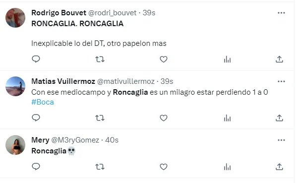 El apuntado, fue el central por izquierda Facundo Roncaglia, quien no mostró su mejor rendimiento y viene en una baja en su nivel, por lo que los fanáticos xeneizes no lo perdonaron, haciéndolo tendencia en las redes sociales por las fuertes críticas.