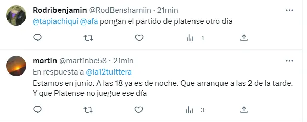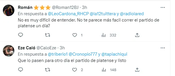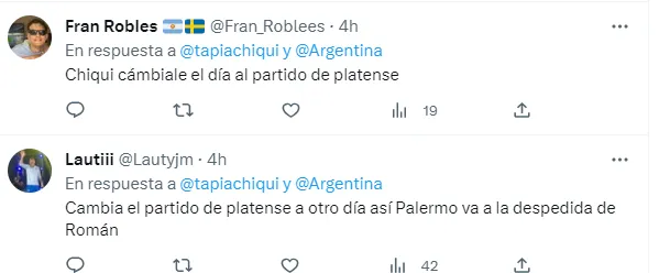 “Pongan el partido otro día”, “Necesitamos a Martín en la despedida”, “Hace algo por favor”, fueron algunos de los mensajes arrobando el usuario del Chiqui Tapia, para que cambie la fecha del partido del Calamar.