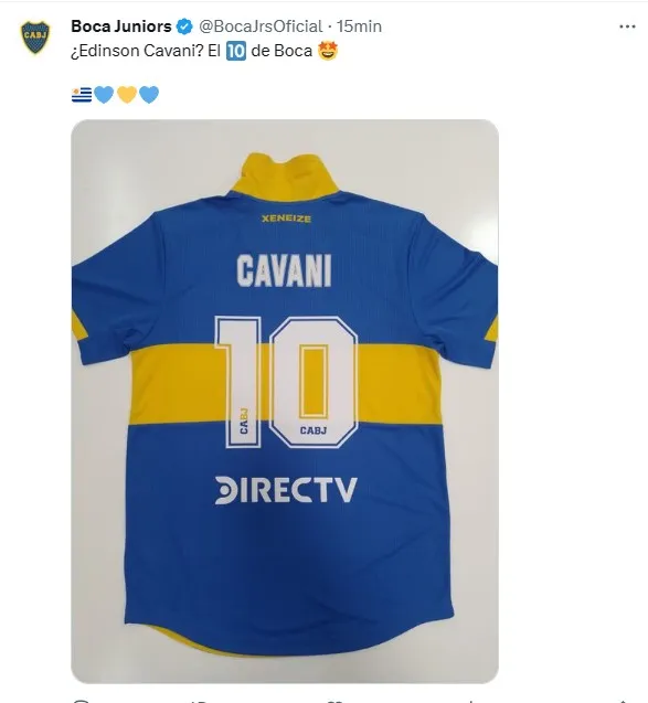 Instantes más tarde, Boca le dio otra gran noticia a los hinchas: el nuevo dorsal que utilizará el uruguayo al vestir la azul y oro. “¿Edinson Cavani? El 10 de Boca”, publicó la cuenta oficial de la institución a través de Twitter para generar el caos entre los comentarios, todos emocionados por la llegada de la gloria charrúa al fútbol argentino.