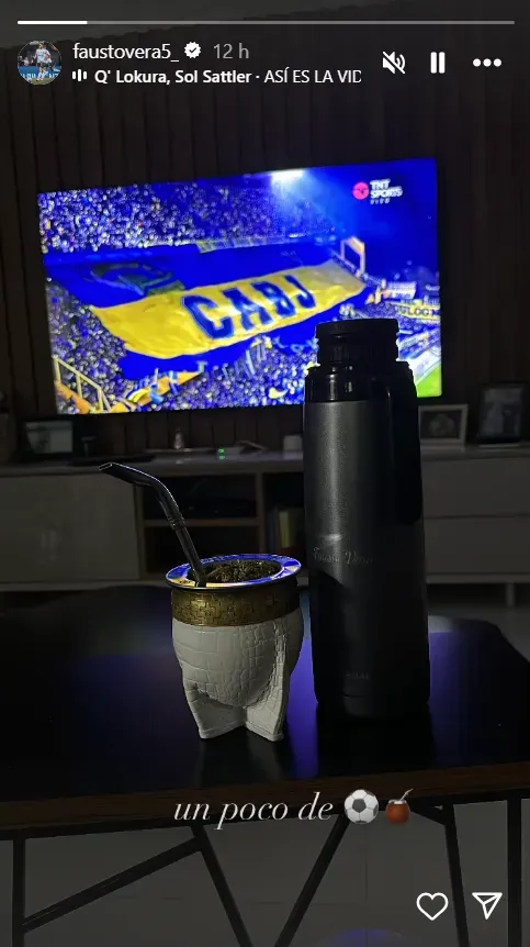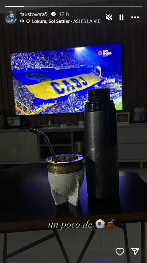 Boca recibió a Talleres el pasado sábado por la noche y el ex volante de Argentinos Juniors compartió una historia en su cuenta de Instagram en la que estaba por tomarse unos mates, pero curiosamente en la foto que subió estaba la hinchada de Boca, que justo había desplegado un telón imponente. No es casualidad que justo haya elegido esa foto para compartir en sus redes sociales.
