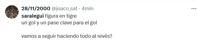 Por eso, ni bien Saralegui anotó el tanto que le daba el triunfo parcial a su equipo, frente al elenco que superó notablemente a Boca la fecha pasada, los hinchas se expresaron en las redes sociales. “Sería titular indiscutido”, fue el comentario que más se repitió en X (ex Twitter) de parte de los simpatizantes del conjunto que hoy comanda tácticamente Miguel Ángel Russo.