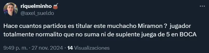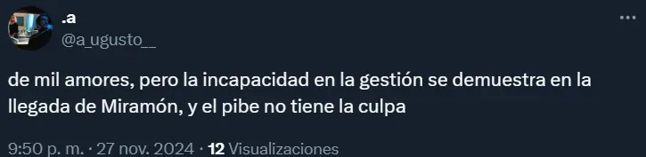 En ese momento, el mediocampista surgido de las divisiones inferiores de Gimnasia y Esgrima La Plata fue silbado de manera masiva por los hinchas de Boca. Y, posteriormente, fue objetivo de las críticas por intermedio de las redes sociales.