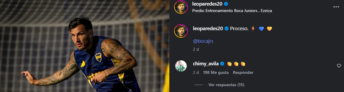 De todas formas, esta transacción aún no se confirmó y los hinchas de Boca se ilusionaron con la posibilidad de contar con él a través de una publicación en Instagram de Leandro Paredes. El capitán subió fotos de la pretemporada del Xeneize y Ávila se hizo presente al comentar con emojis de aplausos.