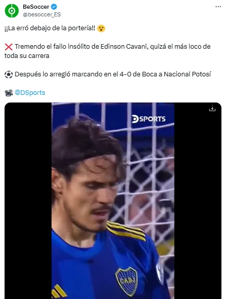 “Error de HORROR desde solo TRES yardas para Boca Juniors”, tituló el medio inglés Daily Mail en lo que fue uno de los artículos más leídos de la jornada en Gran Bretaña. Además, decenas de medios y perfiles oficiales en X (antes Twitter) se hicieron eco del errado de Cavani, como CONMEBOL: “¿Cómo no fue gol, Edi?“.