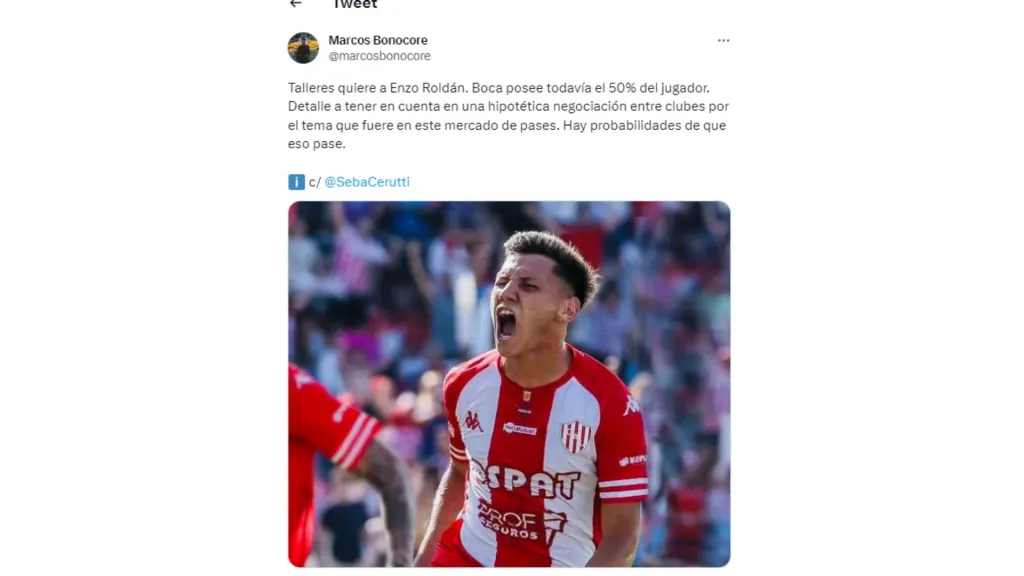 En concreto, el periodista Marcos Bonocore reveló que en el equipo cordobés interesa Enzo Roldán, futbolista surgido en la cantera xeneize y que milita las filas de Unión de Santa Fe. Pese a haberse marchado de Boca en 2021 sin siquiera debutar en primera, en Brandsen 805 aún conservan el 50% del pase y podría negociarse con Talleres por un futbolista de su plantel.