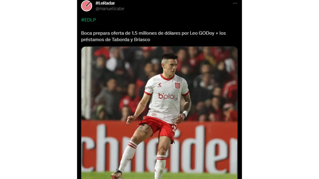 Desde La Plata incluso reconocieron que Boca ofertaría 1.5 millones de dólares por el pase de Godoy y, para completar el valor del traspaso valuado en U$D3.500.000, el club de la Ribera propondría también las cesiones de Norberto Briasco y de Vicente Taborda para el conjunto de Eduardo Domínguez.