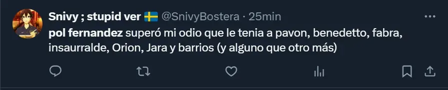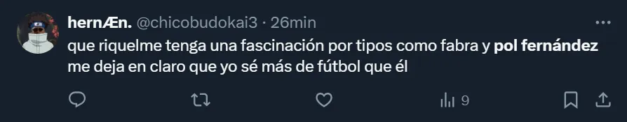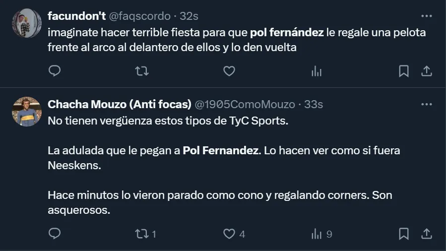 A través de Twitter, el mediocampista de 32 años fue muy criticado, donde varios simpatizantes boquenses coincidieron en que no debía haber sido titular por la operación que concretó, además de que no debía portar la cinta de capitán. “Pol Fernández es un asco, a fin de año se va libre y está jugando encima. Mamita”, destacó el usuario @agostinnnnna_.