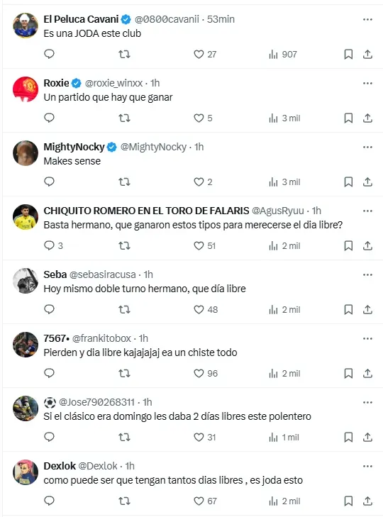 Los hinchas, que poco a poco van perdiendo la paciencia por la merma del nivel de juego en los últimos meses, lejos de aquel Boca que imponía condiciones, arrancaron el domingo con una noticia que no fue bien recibida en redes sociales: Diego Martínez decidió darle jornada libre a sus dirigidos y volverán a los entrenamientos el lunes para poner la cabeza en River.