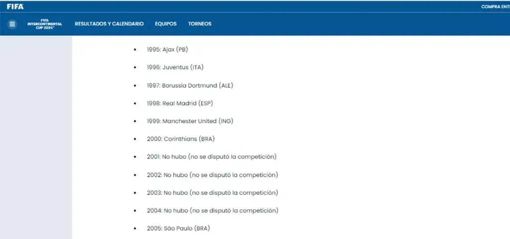 La lista generó gran confusión, sobre todo al leer uno de los párrafos del artículo en el que sí señalaban como campeones del mundo a los ganadores de aquellos años: “En octubre de 2017, el Consejo de la FIFA aprobó una moción por la cual se reconoció campeones del mundo de clubes a todos los equipos europeos y sudamericanos que habían ganado la Copa Intercontinental, disputada entre 1960 y 2004”.