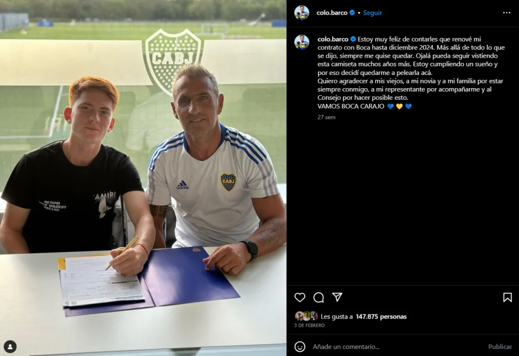 Cuando todavía no estaba afianzado en Primera y casi ni jugaba en Reserva por problemas de renovación, Boca decidió aceptar las condiciones del representante del jugador y ofrecerle lo que quería, pese a lo baja que era la cláusula. Tras renovar, el pibe se expresó en sus redes.