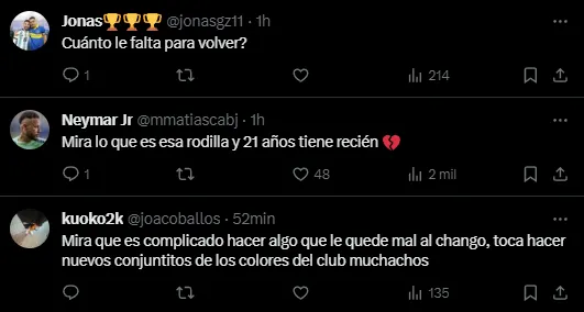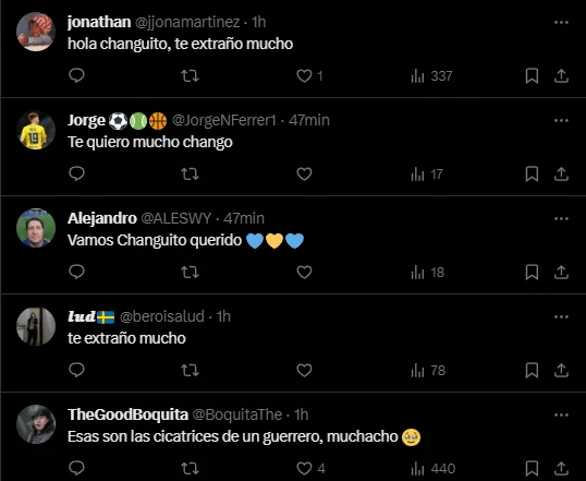 Comentarios tales como “me destruye“, “recuperate pronto que te necesitamos”, “te extraño mucho” y más poblaron la publicación de Boca que tenía la foto de un Zeballos sonriente con mate en mano y con la indumentaria del club puesta. En la captura, se pudo ver la cicatriz de la última operación que sufrió por esta lesión, la cual también generó repercusión entre el Mundo Boca. Los hinchas le mostraron el cariño al Changuito nuevamente, pero se vieron entristecidos por la imagen de su rodilla.