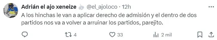 Los simpatizantes del Xeneize reaccionaron al comunicado del club informando los castigos. Más allá de mostrarse en desacuerdo con que le hayan dado apenas 2 fechas a Chiquito, el enojo más grande tiene que ver con la sanción a los socios. Tal es así que lo hicieron sentir en los comentarios.