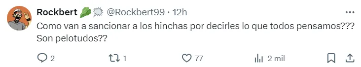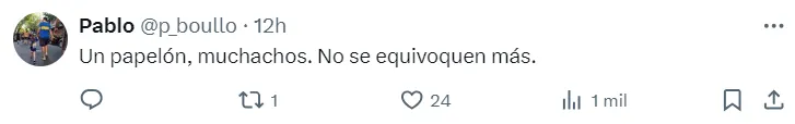 “Vergüenza“, “inoperantes” y “papelón“, fueron las palabras más utilizadas por los fanáticos de Boca para expresar el malestar con la decisión de las autoridades. El posteo tuvo más de 3 mil retuits y 4 mil comentarios al cabo de un par de horas.