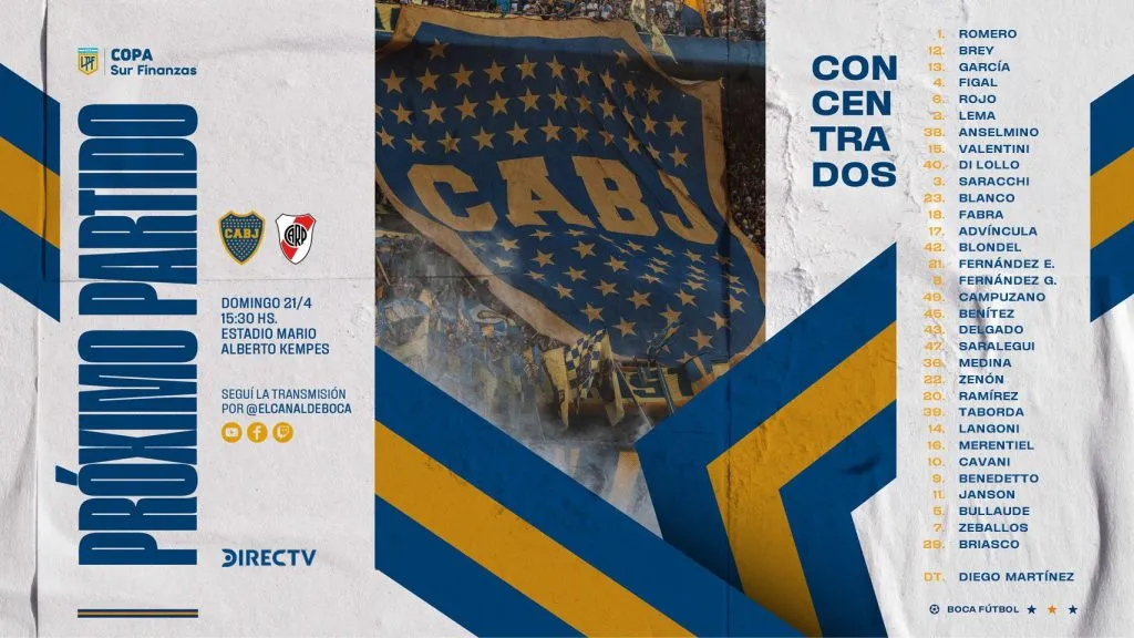 Boca está a horas de viajar hacia Córdoba para enfrentar a River, este domingo a las 15:30 en el estadio Mario Alberto Kempes por los cuartos de final de la Copa de la Liga Profesional, donde Diego Martínez dio a conocer la lista de convocados.