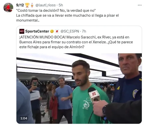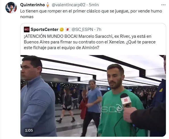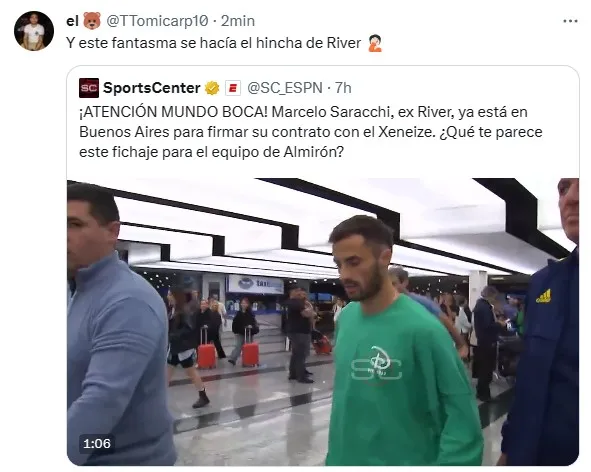 En redes sociales se leyeron comentarios más que drásticos como “vende humo” y “traidor”, luego de que Saracchi decidiera ponerse la camiseta de Boca pese a haber demostrado en más de una oportunidad su cariño por River. ¿Cómo lo recibirán la próxima vez que visite el Monumental?