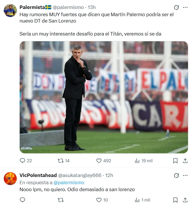 - Usuarios en X expresaron dolor ante la posibilidad de verlo dirigir a San Lorenzo.