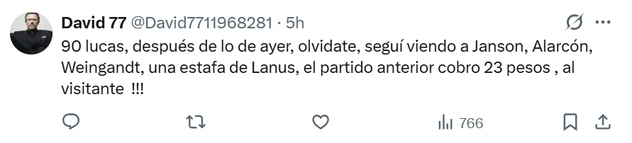 Las repercusiones también le abrieron la puerta al clásico folclore del fútbol argentino. Mientras un sector apuntó sus chicanas directamente contra Lanús, acusándolos de fijar esos precios porque “necesitan de Boca para llenar su estadio“, otros fueron lapidarios con el propio equipo de la Ribera. Para muchos simpatizantes, el delicado andar deportivo del equipo no amerita afrontar semejante esfuerzo económico.