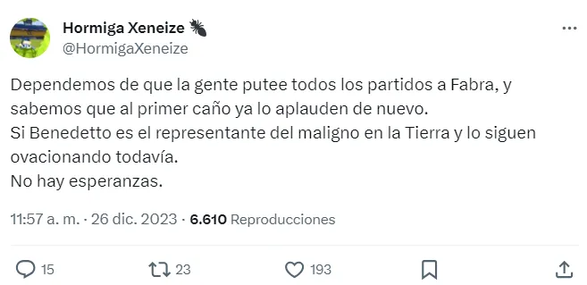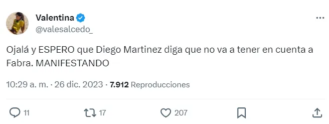 La última palabra la tendrá Diego Martínez, flamante director técnico del equipo de la Ribera, que tendrá su primer encuentro con el plantel el próximo 2 de enero. Mientras tanto, los simpatizantes se expresaron en las redes y las reacciones estuvieron lejos de ser positivas.