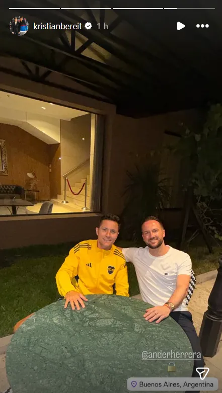 Kristian Bereit se presentó en el Marriott de Ezeiza, donde desde este año concentrará Boca. El propio agente publicó una imagen suya en una historia de Instagram junto a otro de sus representados, justamente Ander Herrera, con buenas chances de ser titular en el Xeneize este domingo.