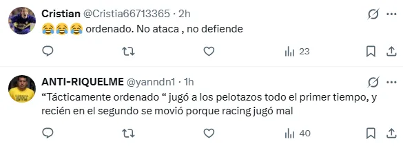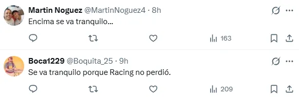 “Necesitamos más profundidad, más llegada y vocación ofensiva para ganar estos partidos“, reconoció el DT, aunque remarcó: “Desde el orden y actitud se puede empezar a construir“. Aún así, la “tranquilidad” no fue bien recibida en las redes sociales, donde los fanáticos no tardaron en expresarse.