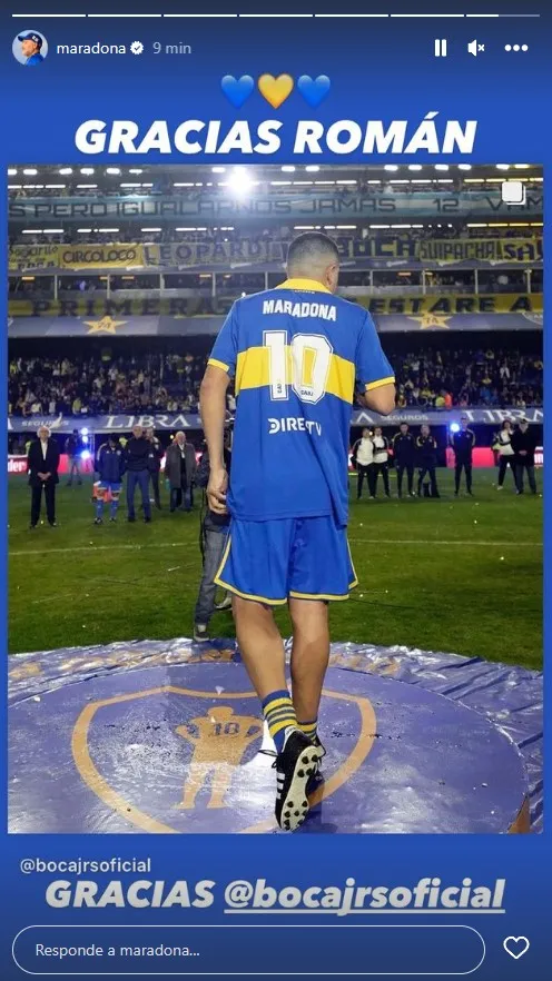 “Gracias Román. Gracias Boca”, publicó la cuenta oficial de Diego en Instagram junto a la imagen de Riquelme con la 10 azul y oro que supo llevar con orgullo Pelusa. Fue el segundo mensaje de la jornada en ese perfil. “Gracias por la magia”, había posteado @maradona en redes mientras se desarrollaba el encuentro en el estadio Alberto J. Armando. Un ida y vuelta soñado por todos los hinchas de Boca.