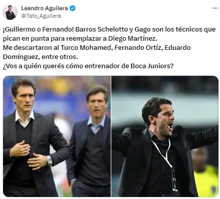 La danza de nombres, que ya había comenzado tras el Superclásico, creció en las últimas horas y poco a poco se van conociendo nombres e informaciones concretas. Decenas de entrenadores fueron relacionados a Boca entre el sábado y el domingo, pero Tato Aguilera adelantó que hay dos que ya son favoritos.
